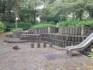 Dazu gibt es viel Moos, viele Ameisen und durch die ?feuchte? Lage ist es sehr rutschig, weil das Moos auf dem Holzboden wie Schmierseife wirkt. Überall moosige, rutschige Holzstempen. Sandkasten mit kleinen Steinen. Eigentlich kann man nur die Rutsche benutzen. Hier muss man alles neu machen. Unfallgefahr!