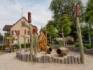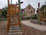 Ausgesprochen schöner Spielplatz mit herrlichen Kletteranlagen. Bis auf Schaukeln alles vorhanden. Sehr schnelles und schön gemachtes Karussell. Direkt an einem schönen Bach (mit Zaun) Kein Schatten! Tankstelle für Getränke und Eis in der Nähe.
