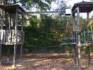 1 kleine Spieleinheit mit Rutsche, eine größere Rutsche, ein Klettergerüst mit Seilbahn, große Tellerschaukel. ganz ok.