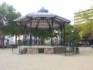 Spielplatz mit zwei Bereichen und in der Mitte einer überdachte Bühne.