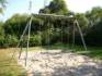 Es gibt folgende Spielgeräte: Reckstange, Rutsche,Schaukel und einen Sandkasten.