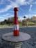 Sehr schöner, recht neu angelegter Spielplatz neben einem Kindergarten am Rande des Wohngebietes. Leuchtturm-Klettergerüst mit Rutsche, Schaukelreifen, Kinderschaukel und normale Schaukel. Zwei Leuchtturm-Wackelbretter, drei kleinere Wackelbretter, eine Gummi-Wackelmatte, ein Karussell und ein Fußballtor. Schön angelegtes Gelände mit drei Bänken und einem Mülleimer. Ein paar Bäume am Rand, relativ wenig Schatten.