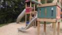 Sandkasten Rutsche Schaukel Seilbahn Wasserspiel Spielhaus