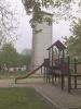 Rutsche, Schaukeln, große Sandkiste, eingezäunt, z.T. schattig