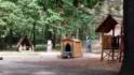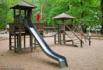 Die Vielzahl der unterschiedlichen Spielgeräte begeistert wirklich jedes Kinderherz: Es gibt eine Wippe, einen Sandkasten, daneben eine Holzeisenbahn, eine Kletterlandschaft mit zwei Türmen, Hängebrücke, Kletternetz und Rutsche. Daneben sind zwei Schaukeln sowie noch ein Klettersechseck mit Reckstangen in verschiedenen Höhen, Kletterstange und Kletterseil.Für die größeren Kinder gibt es eine normale sowie eine runde Tischtennisplatte.