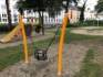 Kleiner Spielplatz in einigermaßen gutem Zustand. Sehr wenig besucht, von daher hat man seine Ruhe. Zwei Schaukeln, eine Wippe, ein großer Sandkasten, ein Drehelement, eine kleine Klettereinheit mit Rutsche, eine große Wippe, die etwas schwer geht, und eine Babyschaukel, also alles vorhanden.
