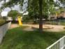Kleiner Spielplatz in ruhiger Sackgasse, vollständig eingezäunt.