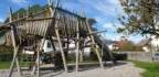 Kleiner Spielplatz, Zugang geht um ein Haus herum (schwierig zu finden, ist ausgeschildert)