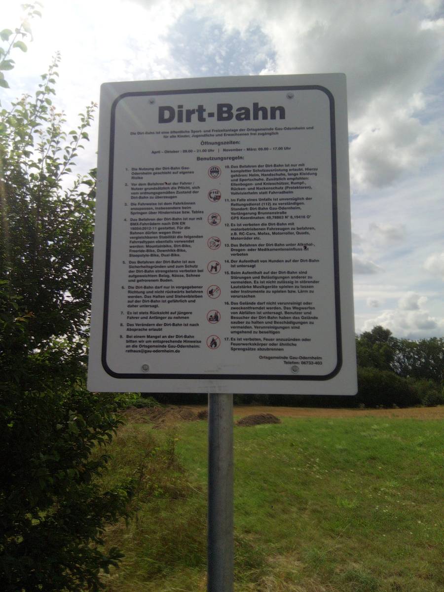 Der Dirtpark ist ein Gelände für BMX und MTB mit kleinen Hügeln und teils von Jugendlichen selbst gebauten Rampen zum Fahren und Springen mit geeigneten Fahrrädern. Der Platz liegt außerhalb der Ortschaft am Wirtschaftsweg zwischen Gau-Odernheim und Bechtolsheim.