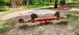 Es gibt eine Seilbahn, ein Karussell, ein Reck, eine Wippe, zwei Wipptiere und Weidensträucher.