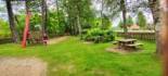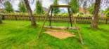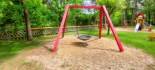 Der Spielplatz hat mehrere Schaukeln, u.a. eine Gondelschaukel, eine Balkenschaukel, eine Nestschaukel und 2 Doppelschaukeln, davon eine mit Kleinkindsitz.